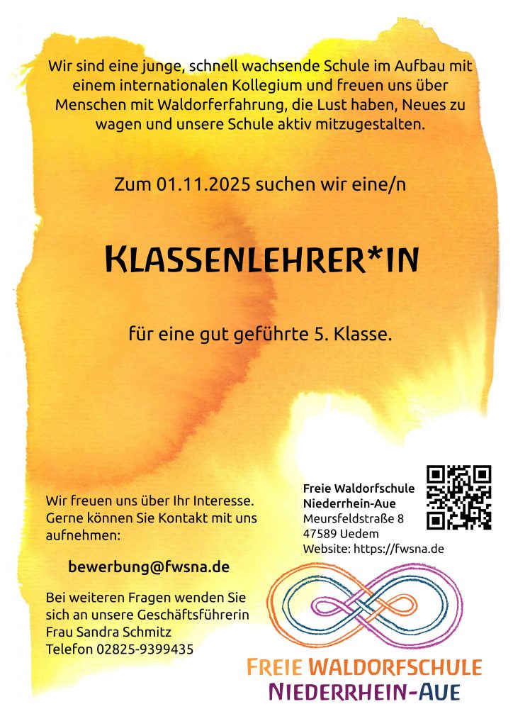 Unsere Schule befindet sich in der Gemeinde Uedem (Kreis Kleve) am schönen Niederrhein. Wir sind ein engagiertes und aufgeschlossenes Team und suchen aktive und ideenreiche Menschen, die auf Grundlage Rudolf Steiners anthroposophischer Pädagogik die Waldorfschule in die Zukunft führen wollen, Altes auf den Prüfstand stellen und bewahren oder verwerfen, neue Wege gehen und aktiv eine Schule für die Zukunft gestalten.